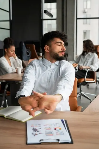 Im halben Kniestand kippe das Becken leicht nach hinten, atme tief in die seitlichen Rippen und hebe den Arm der knienden Seite sanft. Spüre Länge vom Oberschenkel über Bauch bis Brust. Kein Hohlkreuz, kein Drücken. Wechsle Seiten. Zwei Durchgänge lösen Sitzverkürzungen, erleichtern Aufrichtung und reduzieren Druck im unteren Rücken. Danach kurz schütteln, trinken, Blick weit machen – Energie kehrt spürbar zurück.